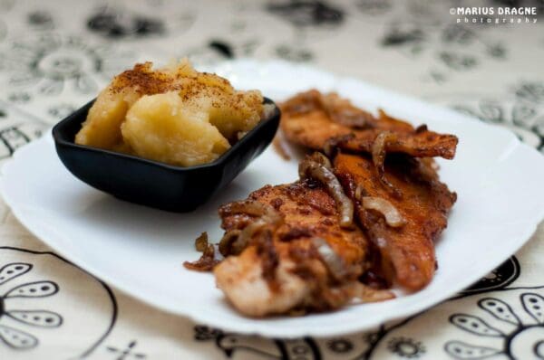Pui cu scortisoara si piure de mere