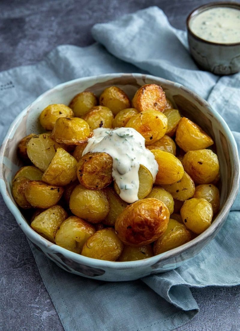 Va spun sincer, daca imi dati un castron plin cu cartofi noi copti, nu mai am nevoie de altceva. Poate o salata de rosii. Oricum i-ati servi, garnitura sau fel principal, sunt un deliciu.