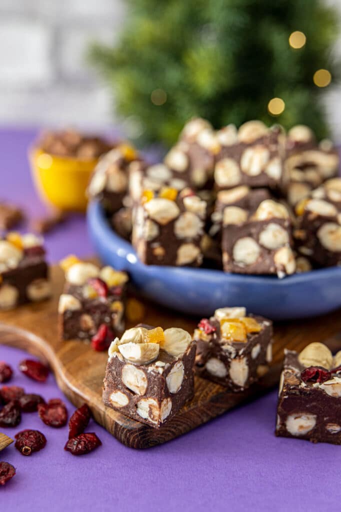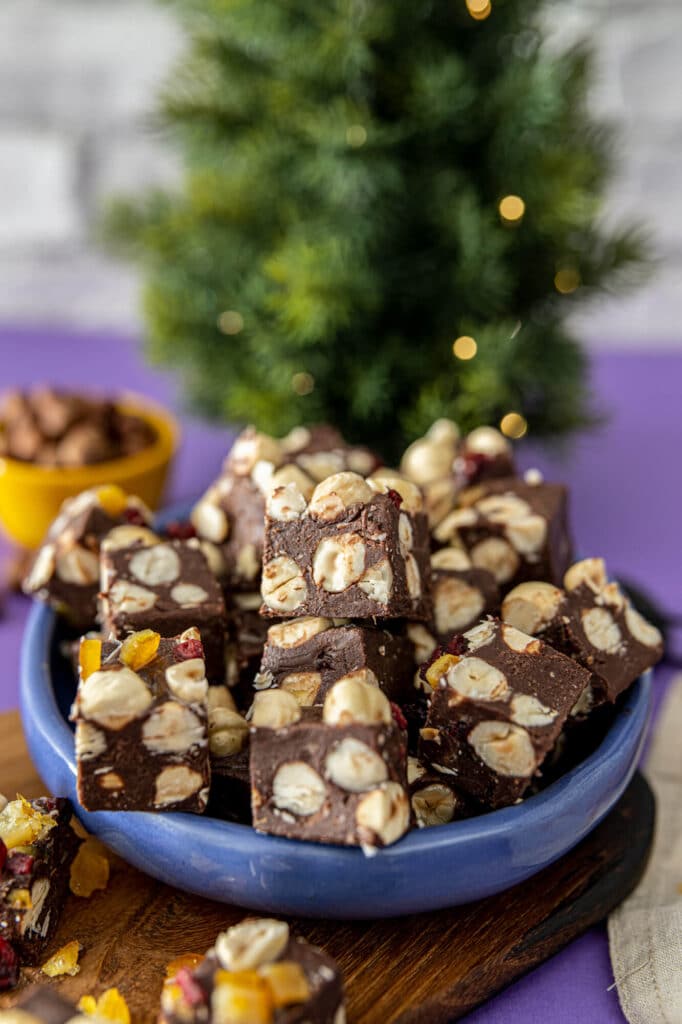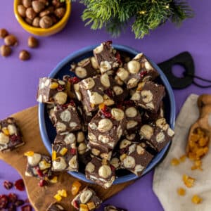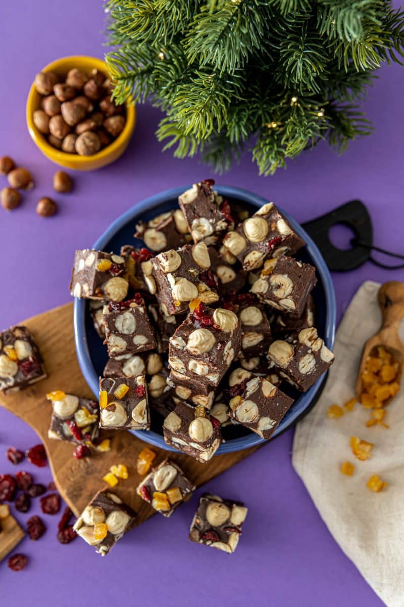 Ciocolata de casa cu alune de padure, merisoare si portocala
