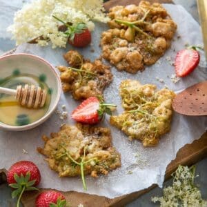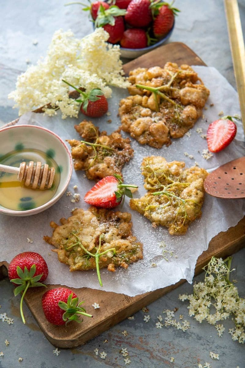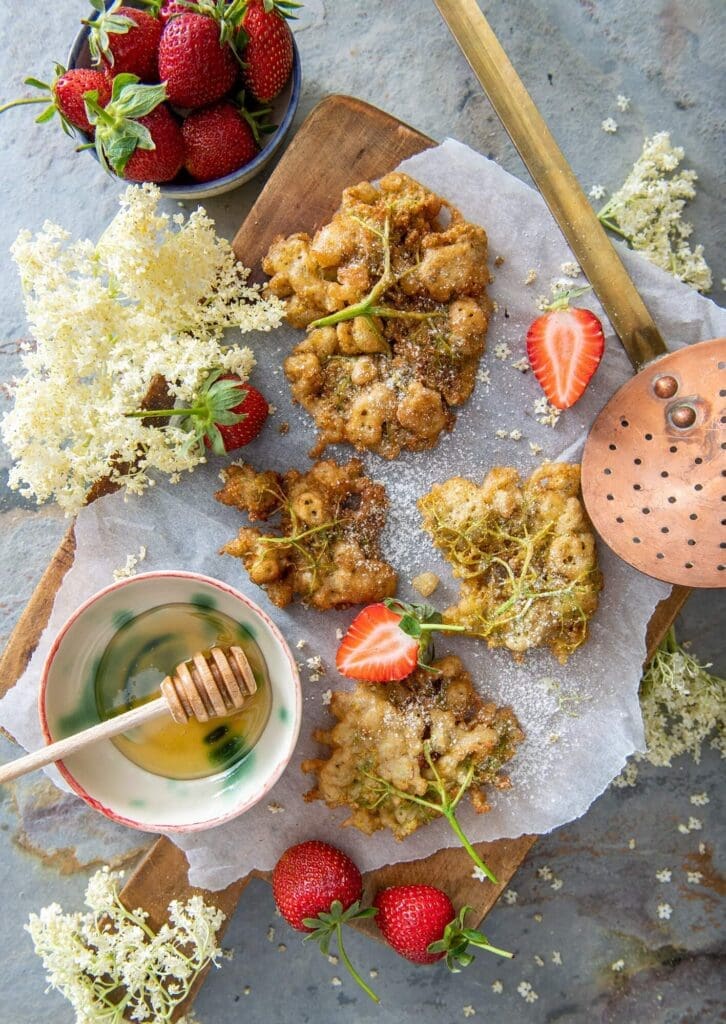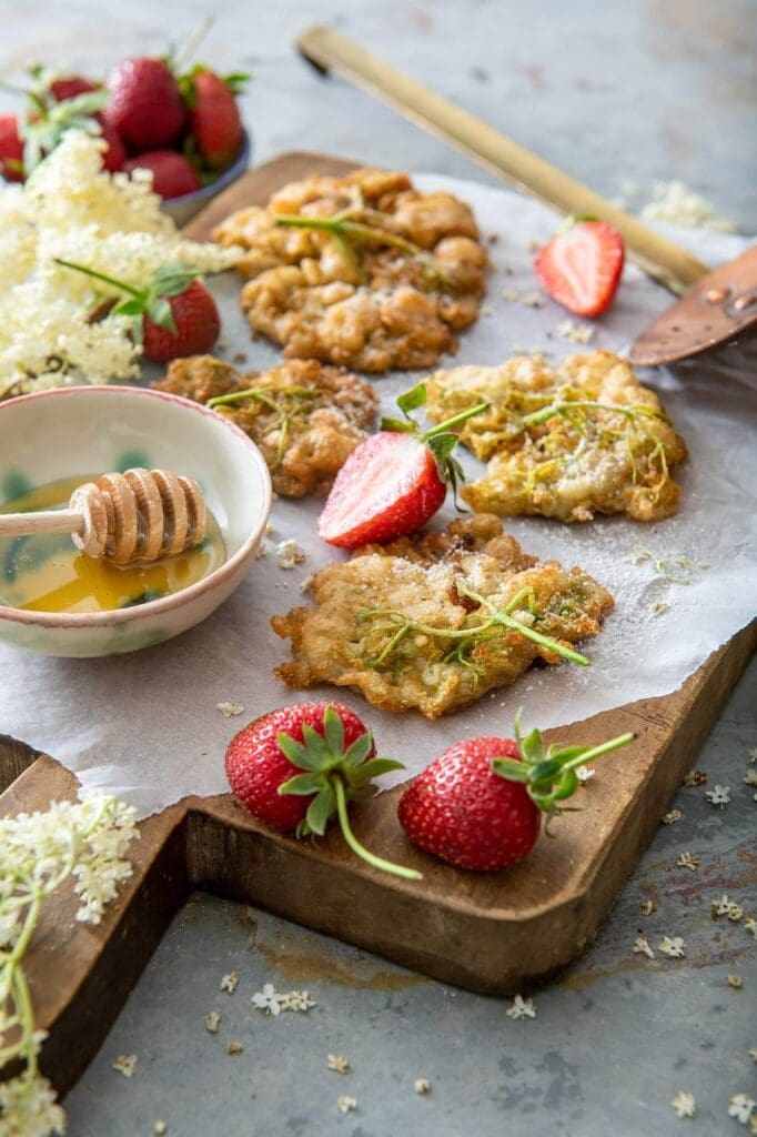 Incepem saptamana dedicata retetelor cu soc, pentru ca sezonul florilor de soc este foarte scurt si vreau sa profitam la maximum de el. Inainte de a face socata sau de a usca florile pentru ceai, ce ziceti de niste friganele din florile de soc, super aromate si delicioase?