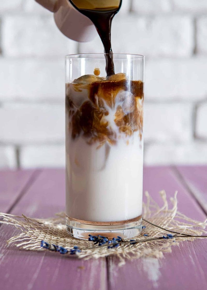 - Umplem paharul cu gheata, turnam deasupra siropul de lavanda, laptele, iar la final cafeaua. Atat de simplu! Savuram!