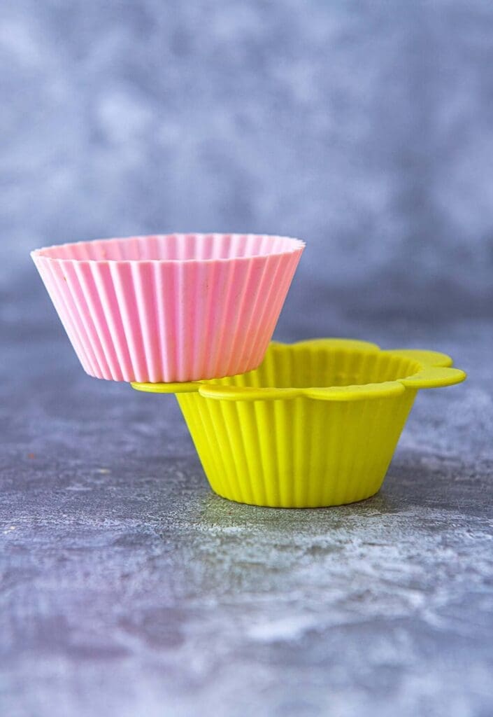 - Preincalzim cuptorul la 180 ℃ si pregatim o forma de copt briosele, punem hartiiile pentru briose in forma. Eu folosesc forme de silicon, nu de hartie, pentru ca imi este mai usor sa scot briosa sau mini cheesecake-ul din ele.