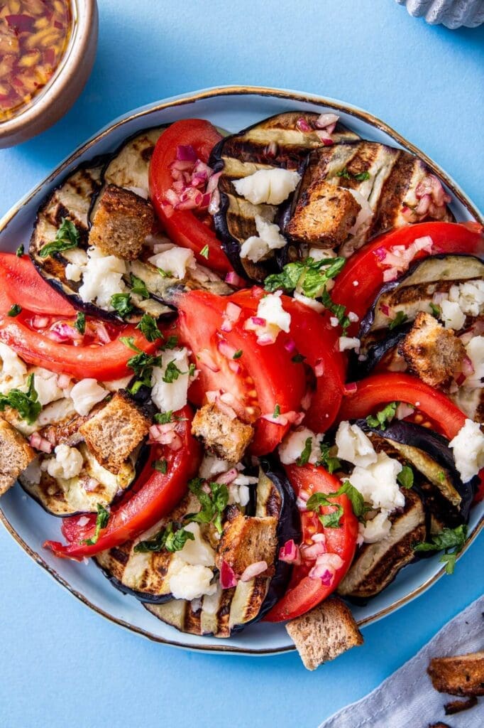 Salata cu vinete, rosii si branza de burduf