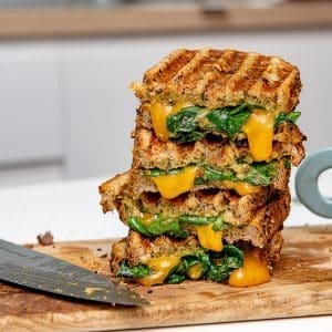 Creamy si dreamy, este tot ce iti poti dori de la un sandwich cald cu pesto si cheddar.