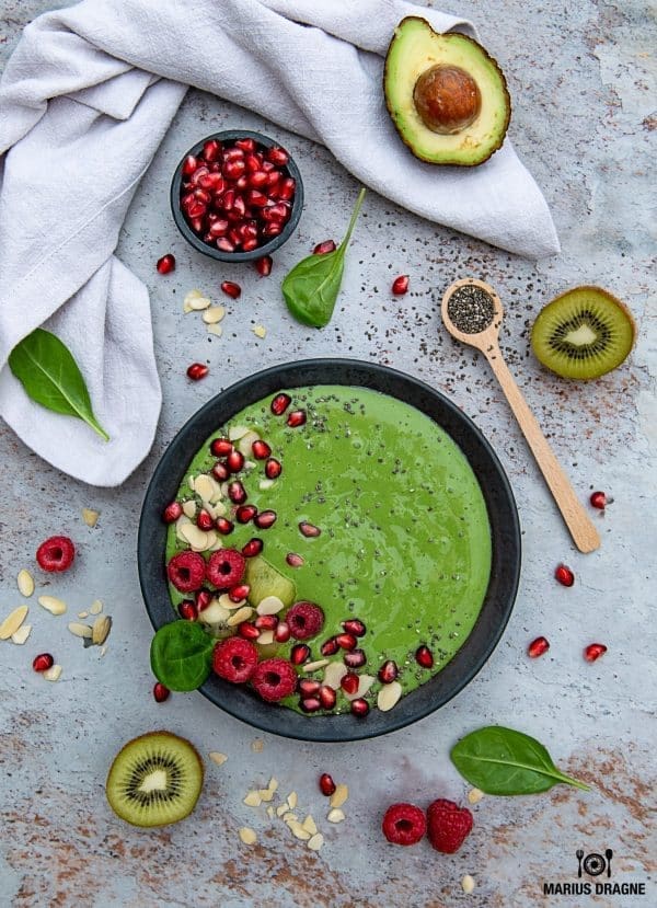 Smoothie bowl verde, racoritor si satios