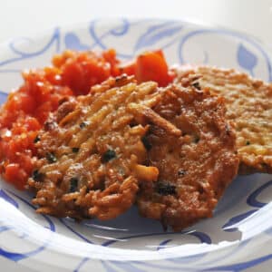 - Incalzim mai mult ulei in tigaie si turnam lingura cu lingura compozitia in tigaie. Prajim fiecare tortita 1-2 minute pe fiecare parte.